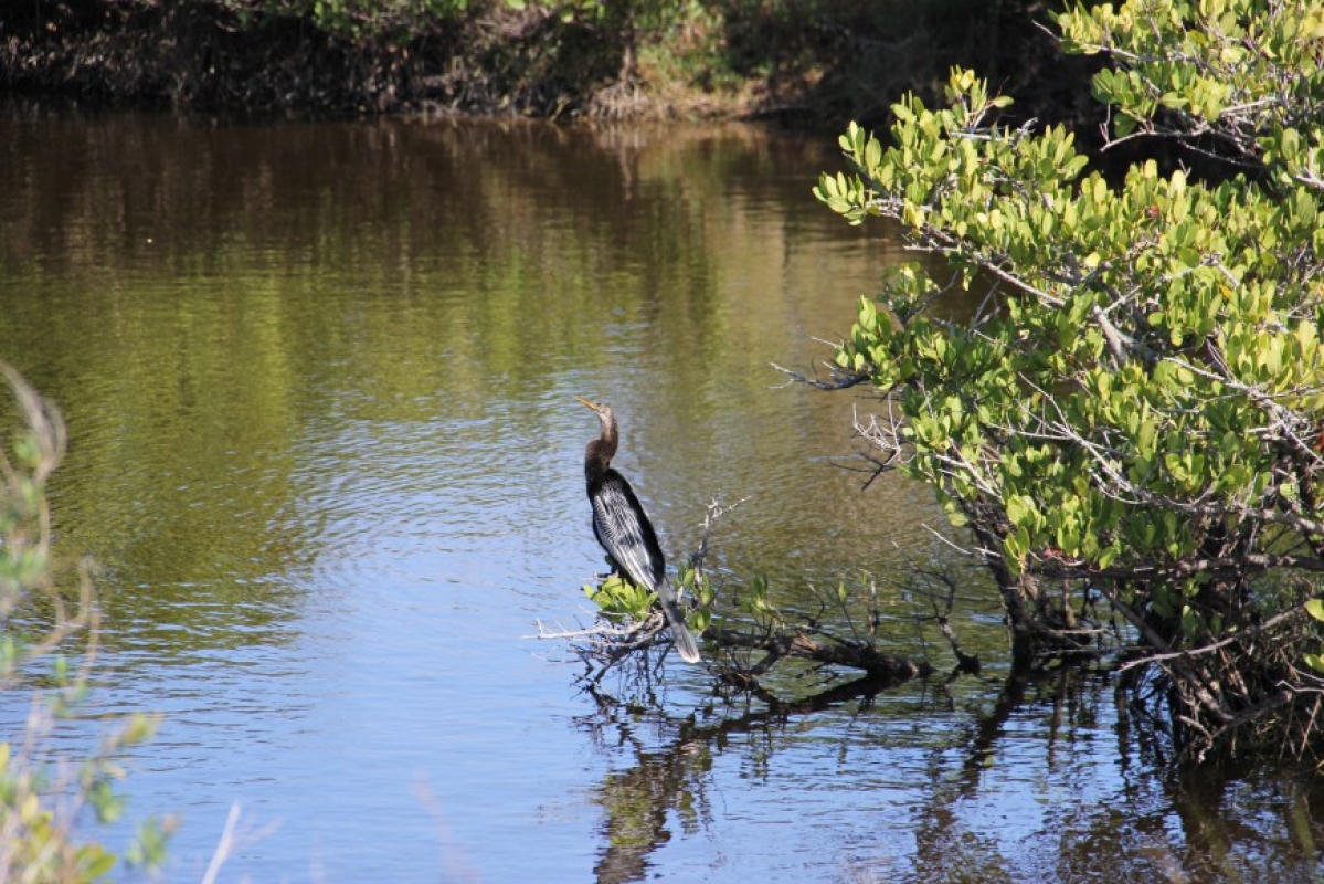 I took a picture of this Anhinga last Saturday (here) afternoon while it was waiting to dry out its feathers. This bird’s feather become waterlogged after foraging underwater and afterwards has to dry out. Unlike the cormorant which can come above water and take off immediately. Usually the Anhinga fans out all of its feathers for drying, unfortunately this bird couldn’t oblige.